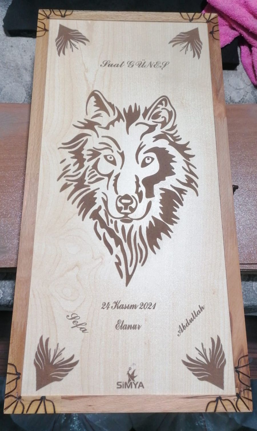 SİMYA FİGÜR BOZKURT AKÇA AĞAÇ KAPLAMA TAVLA (EL YAPIMI) **Ürünümün özellikleri: Tavla açık hali ile 50 cm ye 50 cm ,Tavla Kapalı iken 25 cm en 50 cm boy ve 8 cm yüksekliğe sahiptir. *%100 Kayın Ağacı kullanılarak yapılmıştır. Oyun oynama zemini ise 4 mm akça ağaç kaplamadır. *Otantik ve Nostaljik Dokusuna ve kokusuna zarar vermemek adına su bazlı renklendiriciler ve su bazlı mat cila kullanılmıştır. *Eskitme görünümünü desteklemek ve güçlü tutmak için Eskitme Yonca Menteşe ve Eskitme Kuş Gözü kilit sistemi kullanılmıstır. *Pulları ise 3,5 cm çapa sahip olup 5 mm Kalınlığındadır. 100 denye tela kumaş içerisinde kullanıma hazır bir vaziyette gönderilecektir. Keselerimi dahi kendim dikiyorum... *Tavlalarım da ahşap pul kullanmama sebebim ağaç ağacı tuttuğu için pullar rahat kaymıyor. Bunun yerine akrilik özellikli ham maddeden basılan pullar kullanıyorum. **Tavlalarım seri üretim olmadığı için hata payı en aza indirgenmiş olup, kişiye özeldir. Tamamen ''Kadın'' işçiliği ve emeğidir. **Her bir ürünüm ağacın damar yönüne göre şekil aldığı için tonlama olarak farklı olur. Bu da ürünü butikleştirir ve kişiye özel kılar. **Almış olduğunuz ürüne mağazaya soru sor kısmından ulaşıp üzerine isim kazıtarak kişiselleştirebilirsiniz. Naturel bir üründür. Paketi açtığınızda ağacın kokusunu, Dokunduğunuzda ise pamuksu dokusunu hissedersiniz. ^^marangoz anne ^^den saygılar...
