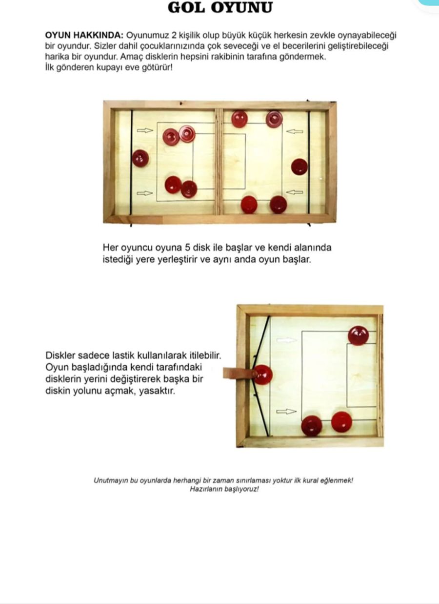 oyunun amaçı: rakibin kalesine en fazla diski sokmak.